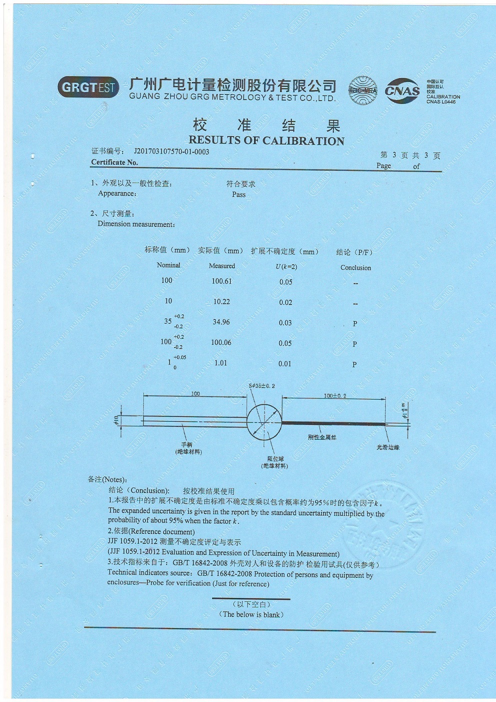 IP4X試驗(yàn)探針(試具D)權(quán)威機(jī)構(gòu)計(jì)量證書